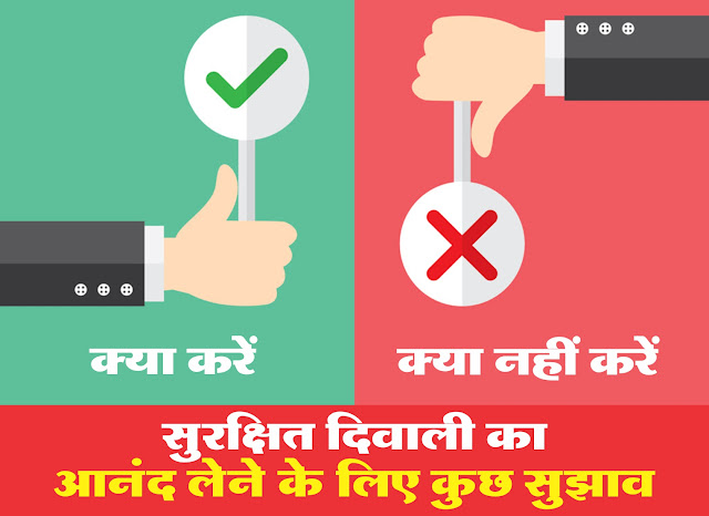 दिवाली में क्या करें और क्या नही करें के बारे में हम सुनते आए है। फिर भी कुछ खास बिंदुओं पर एहतियात बरतने से खुशनुमा माहौल में कोई अनहोनी घटना घटित होने से बचा सकते हैं।
